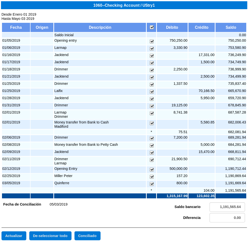 • Compara todas las transacciones de una cuenta (Cuenta Bancaria) con respecto a un valor especifico (saldo de Extracto bancario).